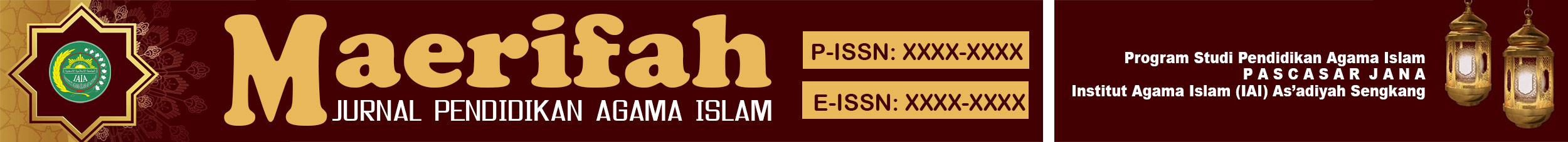 MAERIFAH is a scientific journal that publishes research findings and ideas in the field of Islamic Education in order to spread knowledge, technology, and art. Maerifah is organized by Study Program of Islamic Education, Graduate Program, Institut Agama Islam As’adiyah Sengkang.